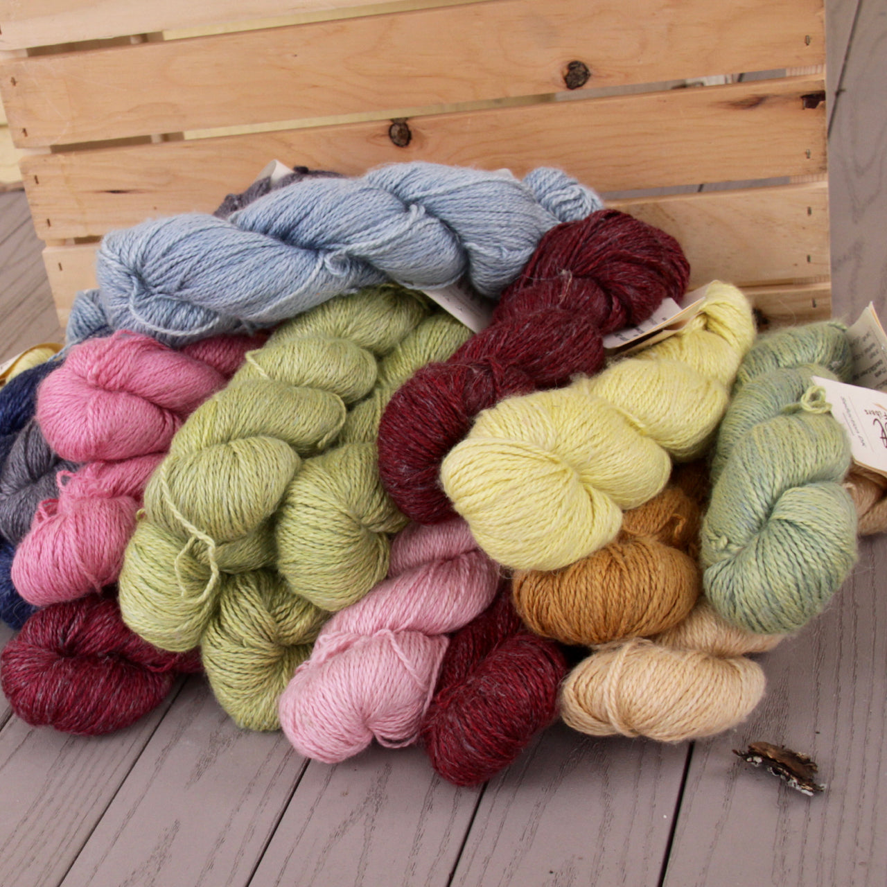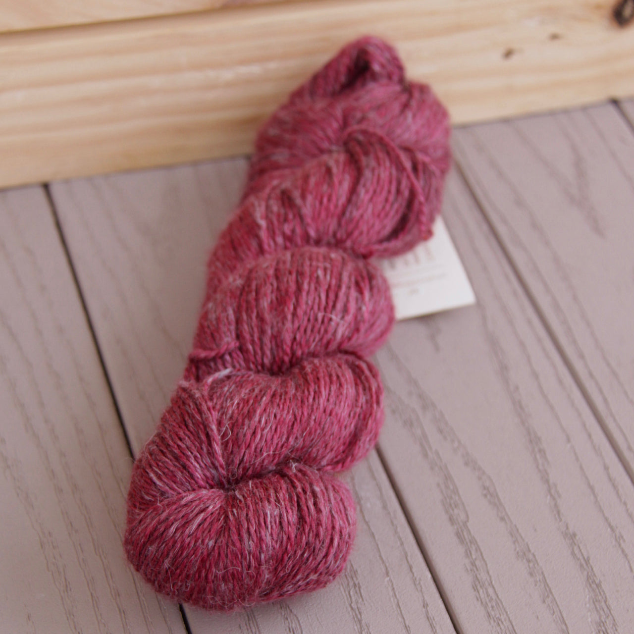 Pure indulgence! A cowl out of this feels like wearing a cloud; warm and light, you will not want to take it off. This is a DK version with a blend of Alpaca/Linen/Silk (50%/25%/25%) in a generous 272 yards. The colors on this yarn come out a bit muted with a lovely heathered effect. Finished projects from this base are light, have a nice drape, and are warm without being too warm, giving the perfect temperature balance.